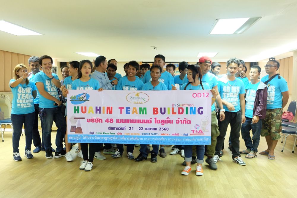 งาน Team and Tour ปี 2560 บริษัท 48 เมนเทนแนนซ์ โซลูชั่น จำกัด ดินเนอร์สุขสันต์ สวรรค์กลางใจ ชาว 48 เมนเทนแนนซ์ โซลูชั่นร่วมใจ พร้อมเพรียงสามัคคี Hua Hin Team Building By Siamtogo กรุ๊ป 48 เมนเทนแนนซ์ โซลูชั่น ระหว่างวันที่ 21-22 เมษายน 2560 ณ โรงแรมบลูเวฟ หัวหิน จังหวัดประจวบคีรีขันธ์